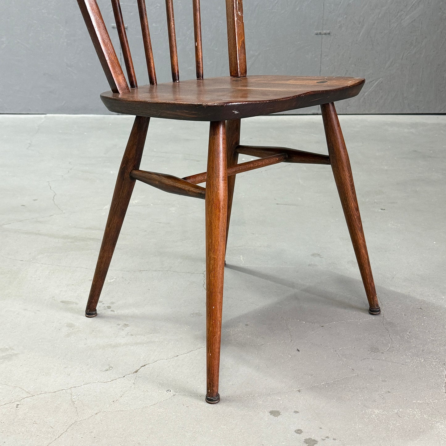 ERCOLのウィンザーチェアの中でもベーシックなアイテムです。精巧な4本スポーク構造が美しいフープバックシルエットを形成し、スタイリッシュな印象が特徴です。チェアのフレームはブナ材、背もたれのスピンドルはブナ材、オイスター型のシートは無垢のニレ材から作られています。クエーカーチェアやゴールドスミスチェア等と比べ小さめサイズ感で、お部屋のちょっとした場所に飾り棚としても利用される事が多いアイテムです。