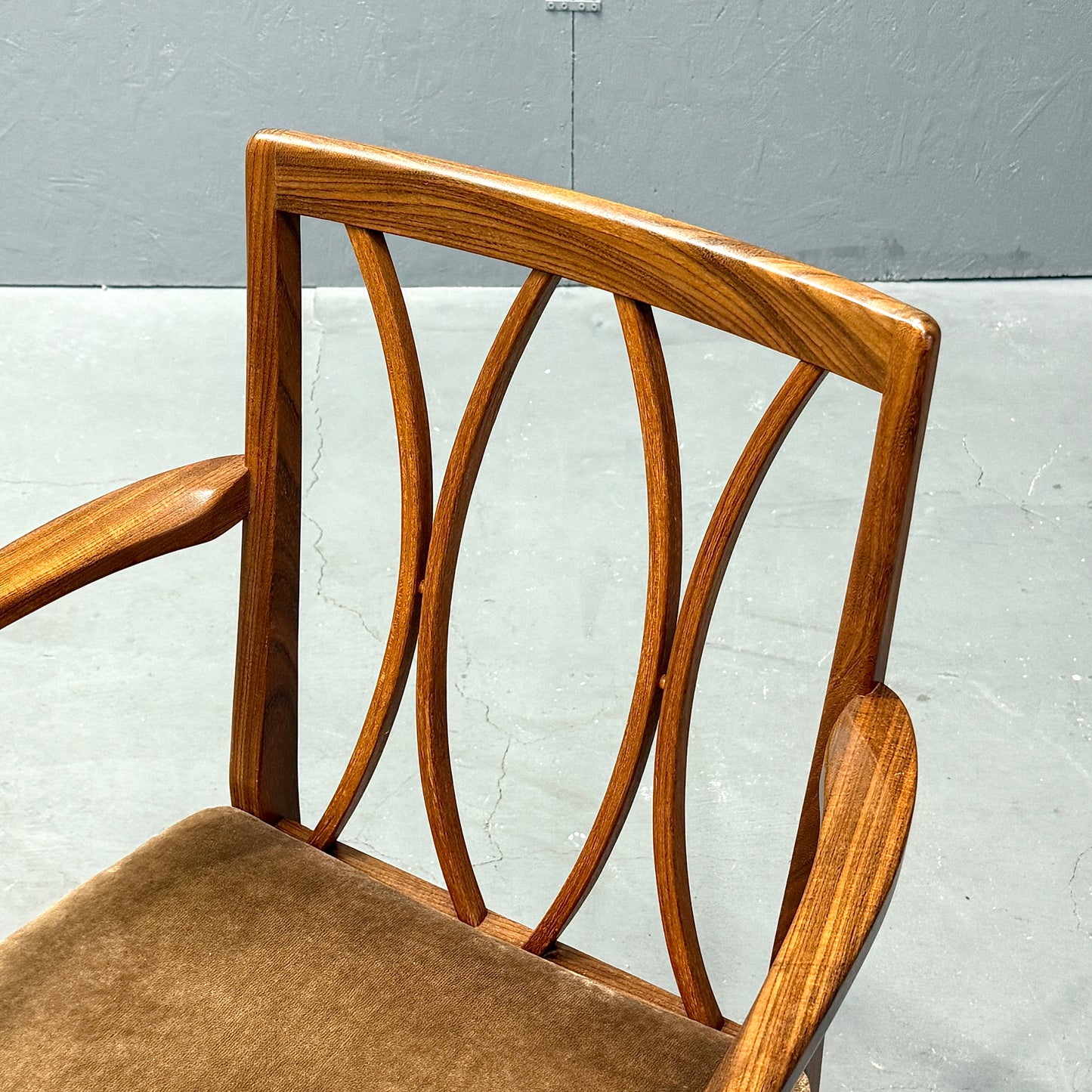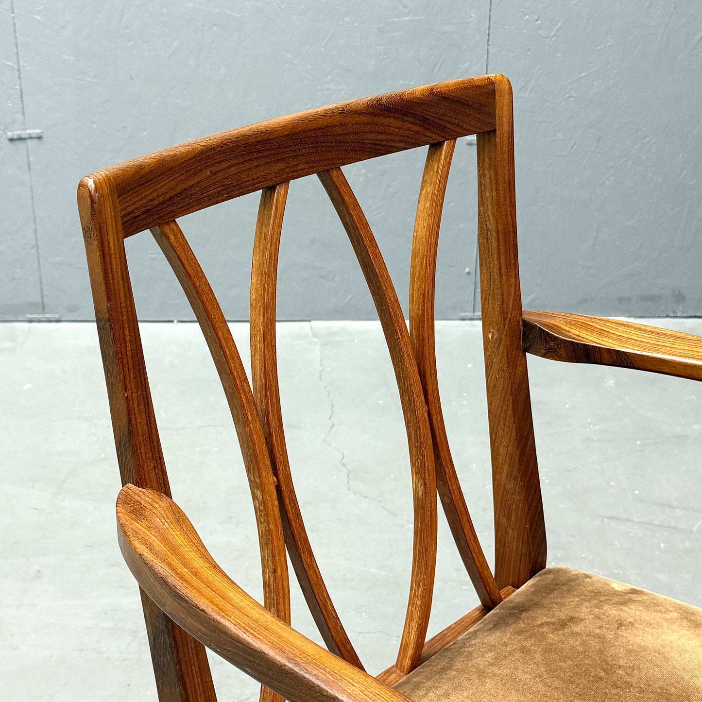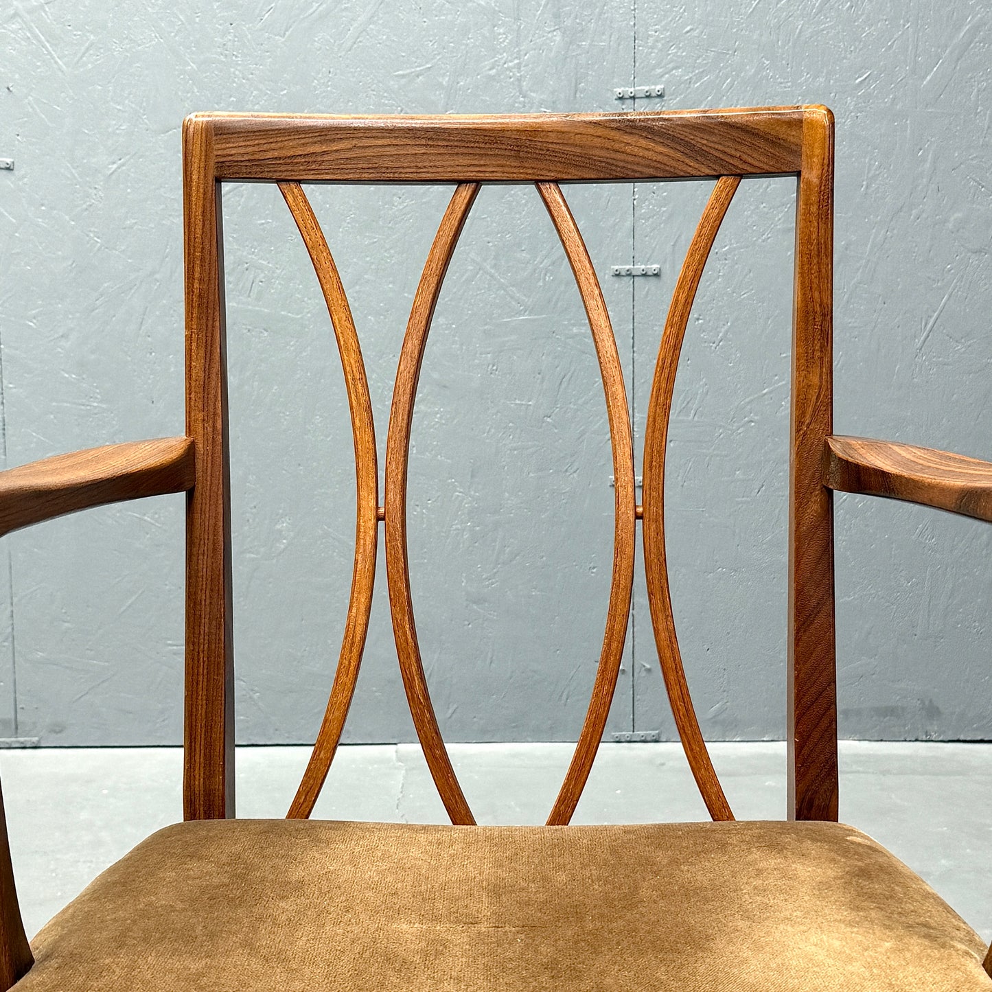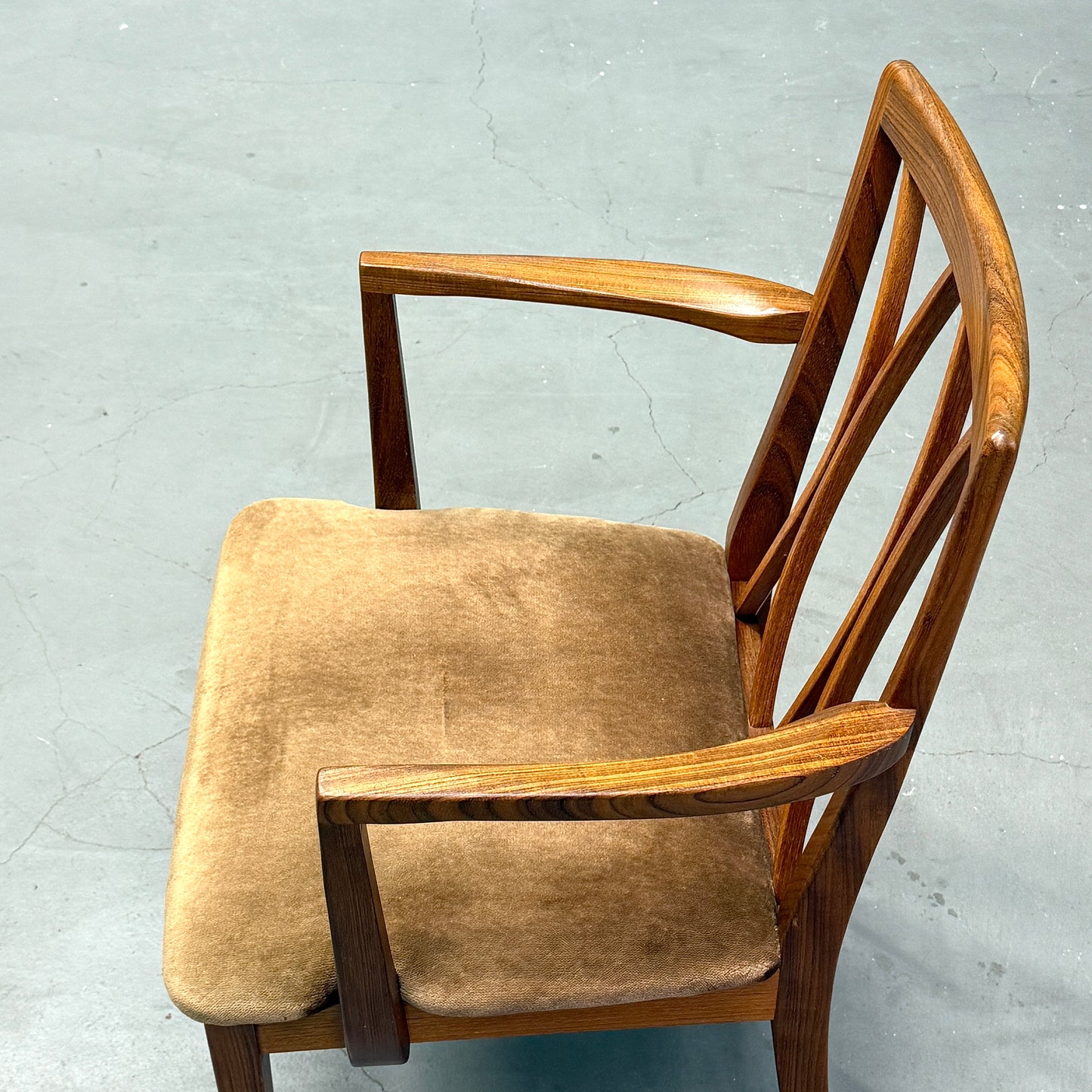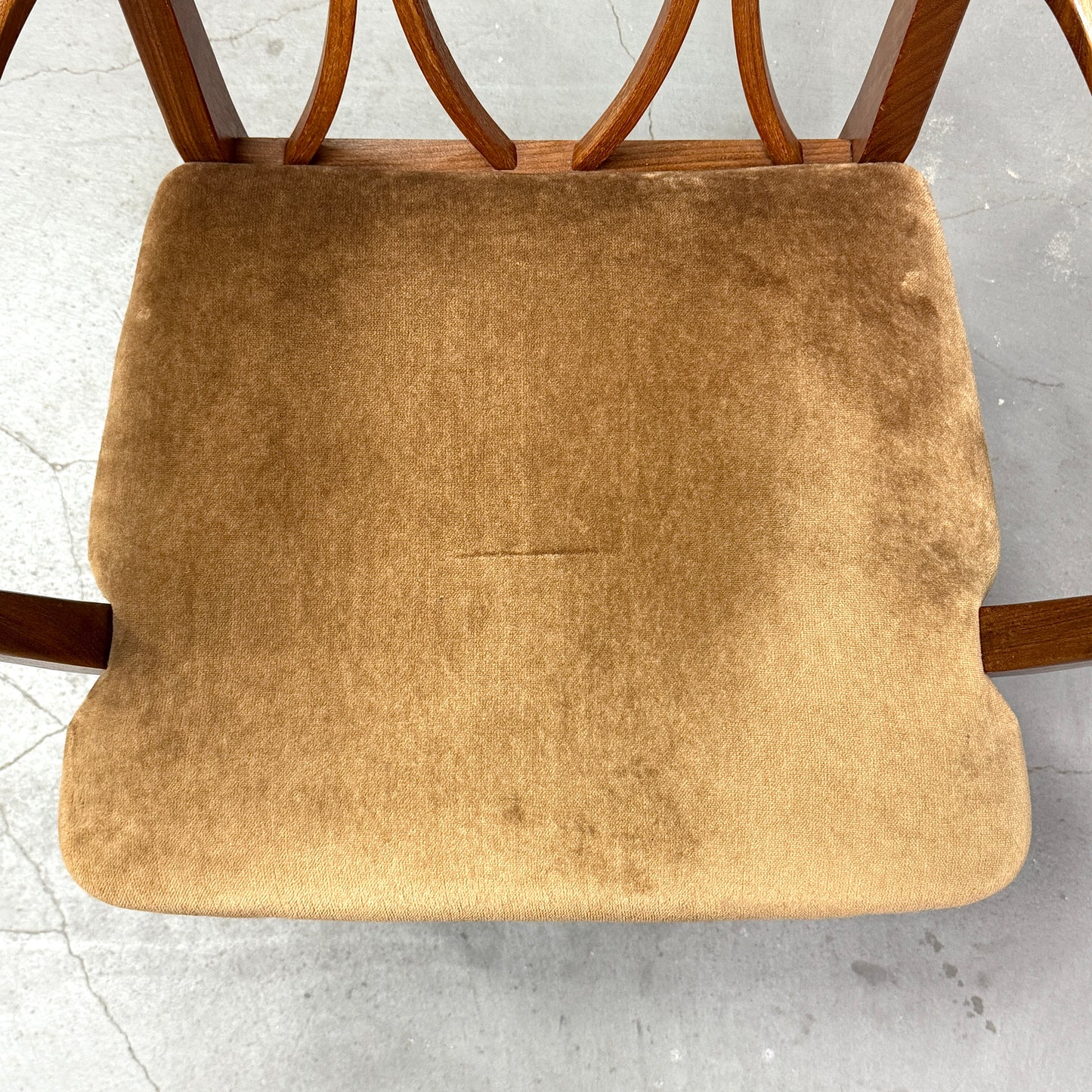 1960〜70年代頃製造の、G-Plan によるVictor Bramwell Wilkins(ビクター・ブラムウェル・ウィルキンス ) デザインのFrescoシリーズ、1960〜70年代頃のXバックダイニングチェア。背もたれの「X」字型のカーブを描いたデザインが特徴的で、エレガントさとモダンさを兼ね備えています。
