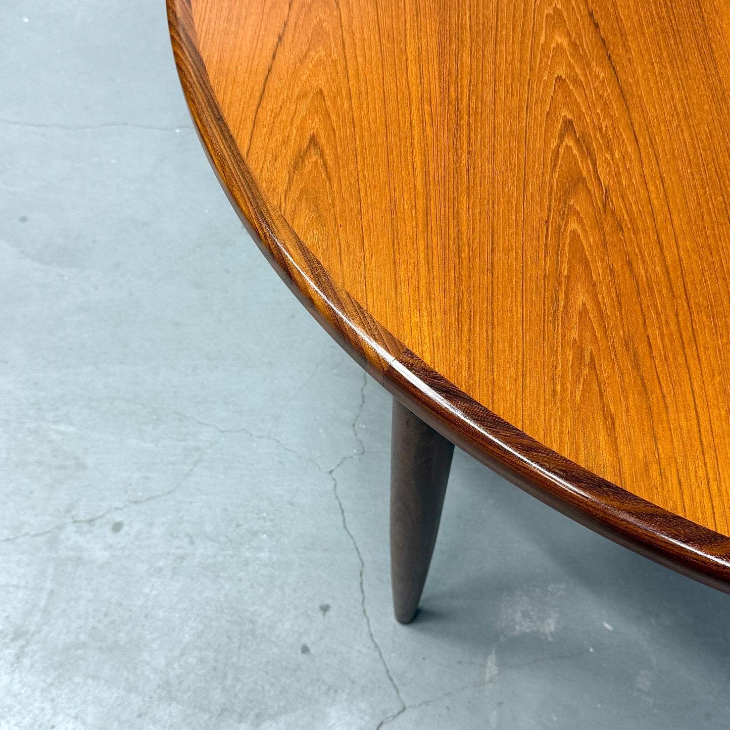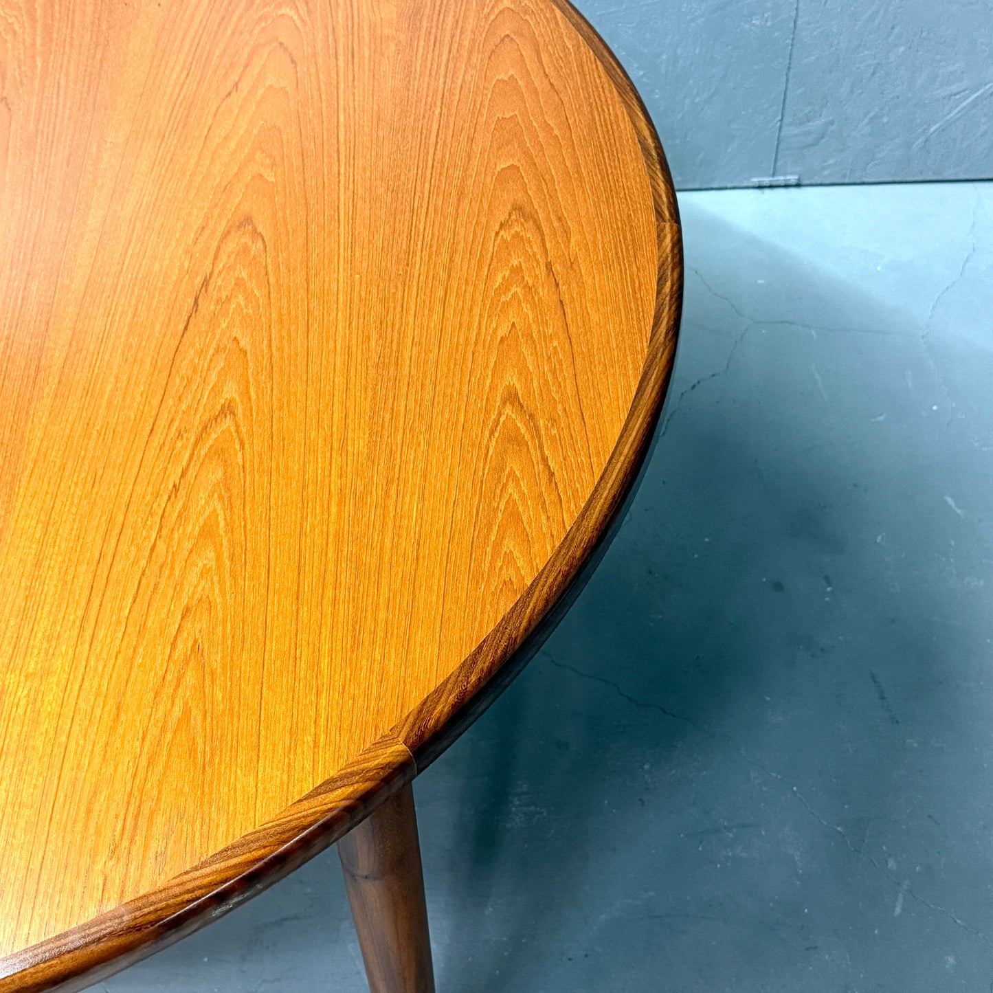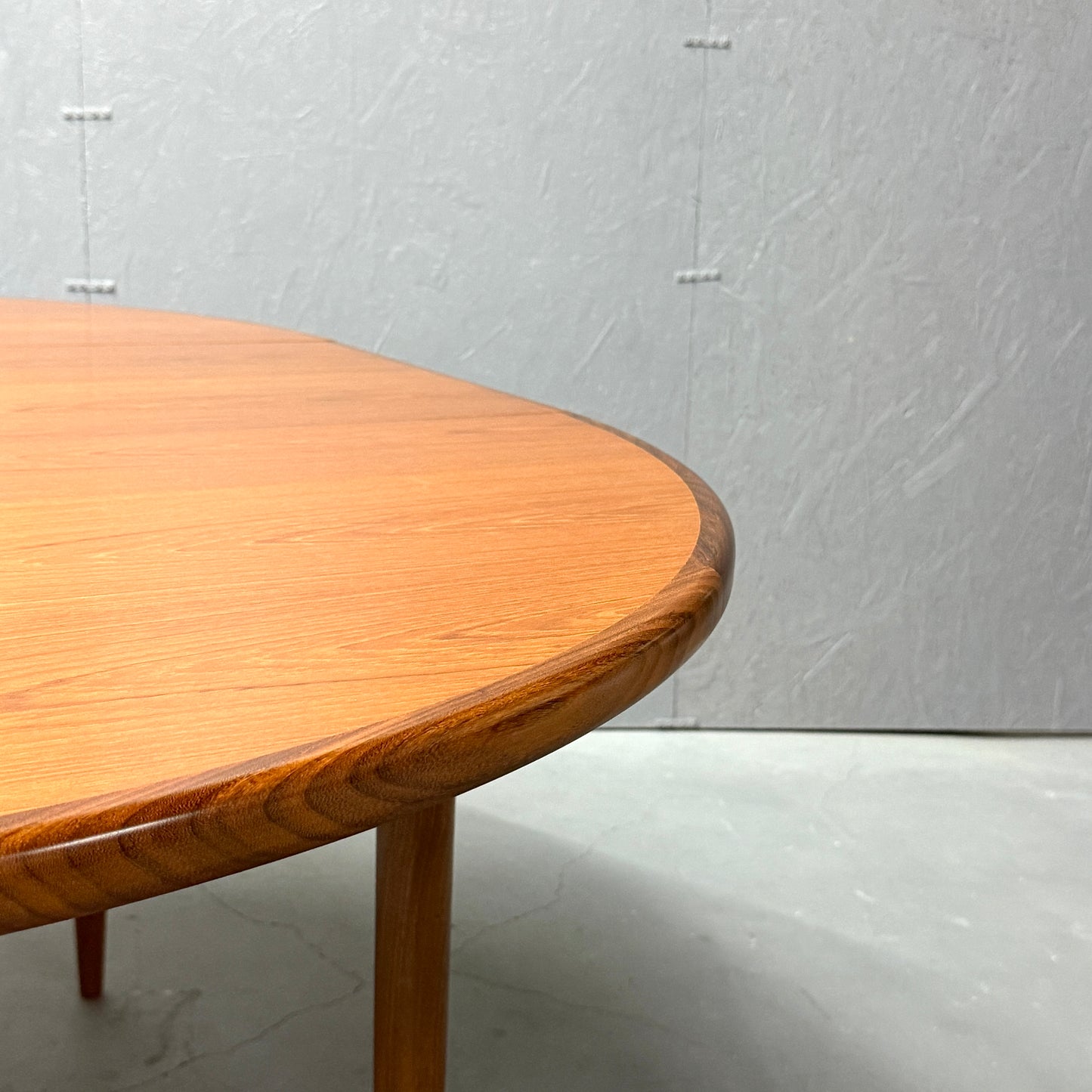 Fresco/フレスコシリーズのラウンドテーブルです。天板はエクステンション(伸長式)する事ができ、ラウンド形とオーバル形(楕円)の2wayで利用する事が可能。デザインはシンプルかつ洗練されており、チークの無垢材が高級感を演出します。リビングルームやダイニングルームにレイアウト頂くと他の家具やインテリアと調和することができます。