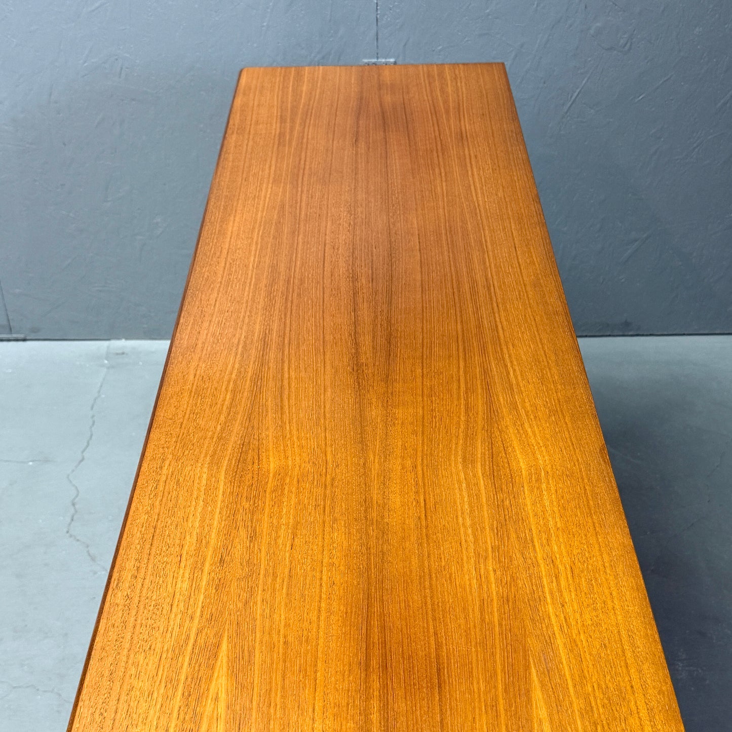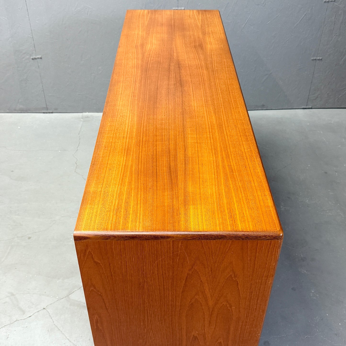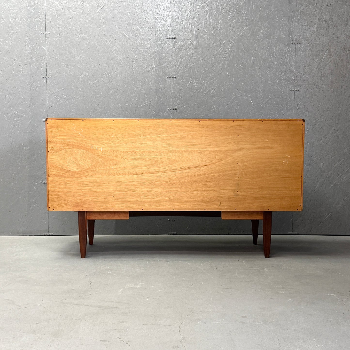 G-PLANの人気なフレスコシリーズのサイドボードです。イギリスのデザイナーであるビクター・ウィルキンソン(Victor Wilkins)によるデザインです。スキャンジナビアンスタイルの雰囲気を醸しており、主に使われているチーク材の経年変化ならではの美しい色合いが特徴。無駄のないデザインとシンプルな形状がどんなお部屋にもマッチします。上部には大きな引き出しが3つ、下部には収納があり、たっぷりの収納力を誇ります。サイズも日本の一般家庭向きで大き過ぎず、レイアウトがしやすい主役級のアイテムです。