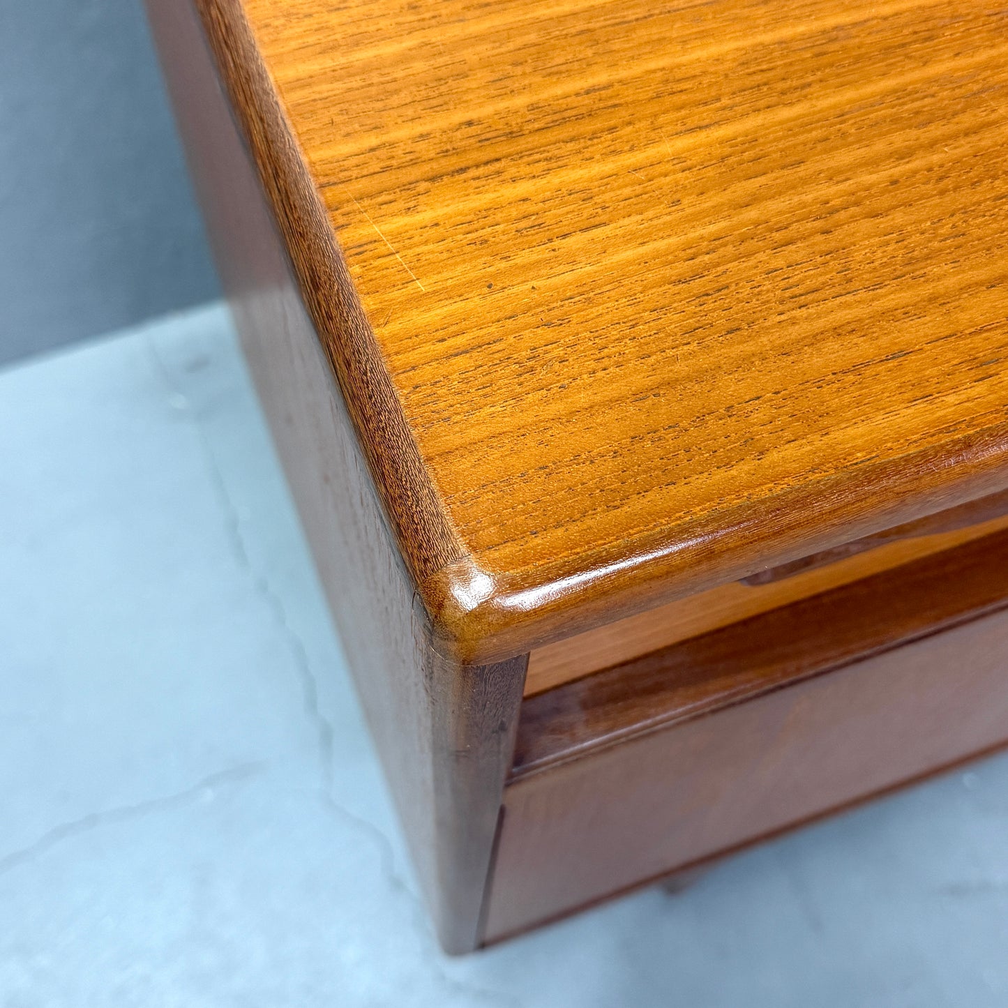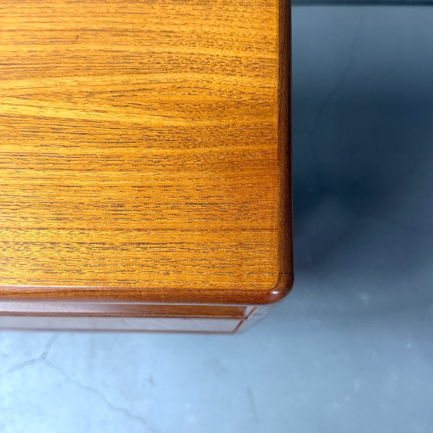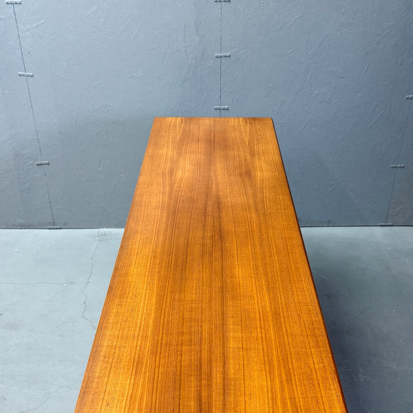 G-PLANの人気なフレスコシリーズのサイドボードです。イギリスのデザイナーであるビクター・ウィルキンソン(Victor Wilkins)によるデザインです。スキャンジナビアンスタイルの雰囲気を醸しており、主に使われているチーク材の経年変化ならではの美しい色合いが特徴。無駄のないデザインとシンプルな形状がどんなお部屋にもマッチします。上部には大きな引き出しが3つ、下部には収納があり、たっぷりの収納力を誇ります。サイズも日本の一般家庭向きで大き過ぎず、レイアウトがしやすい主役級のアイテムです。