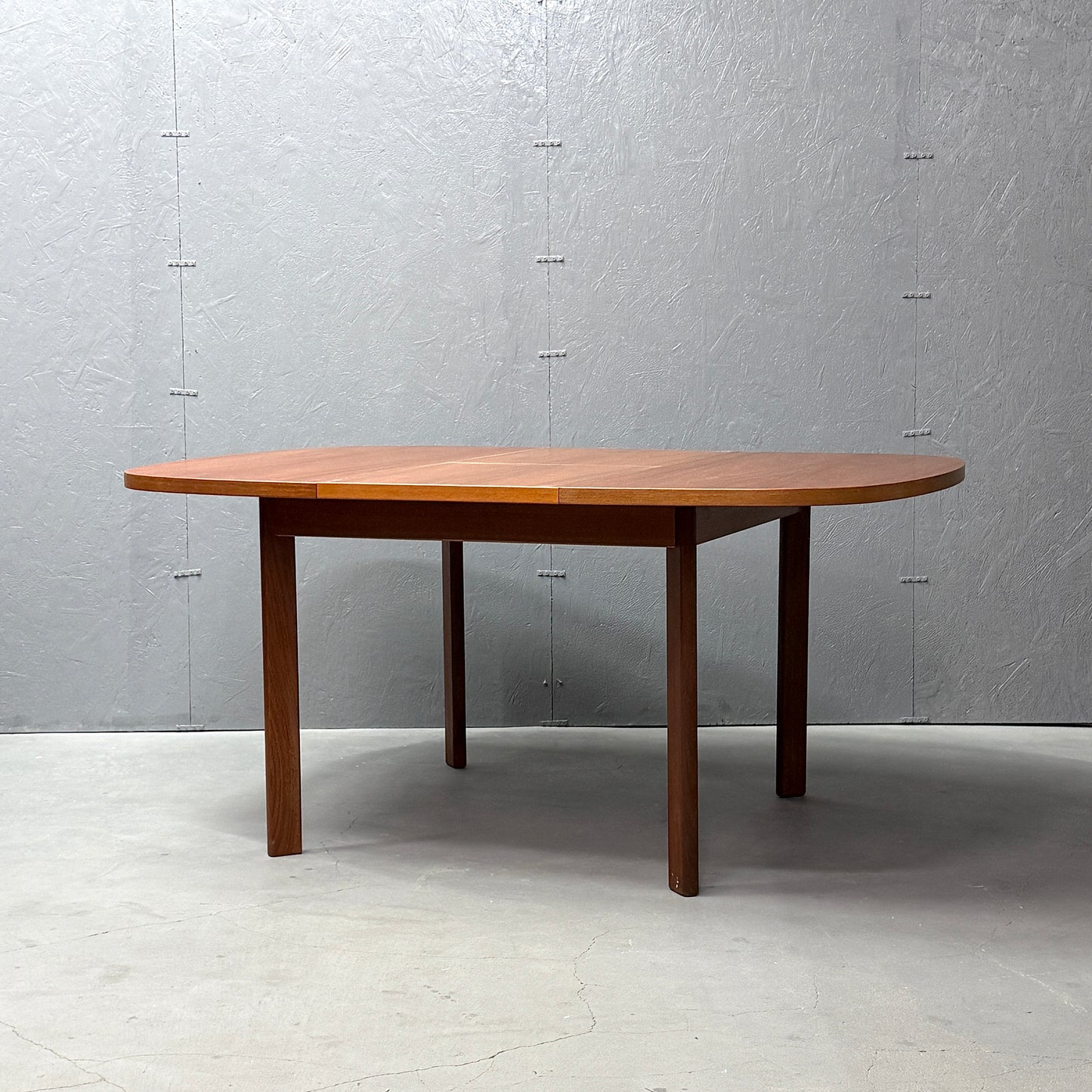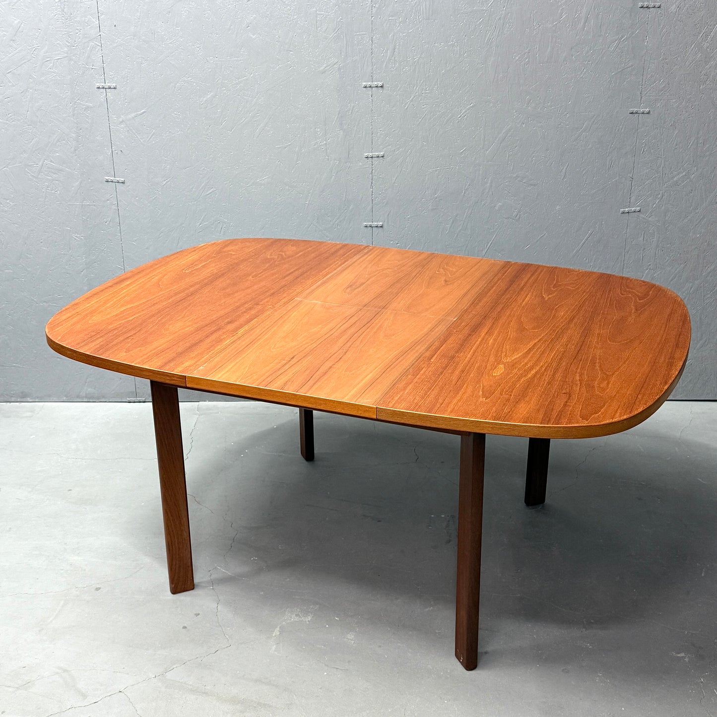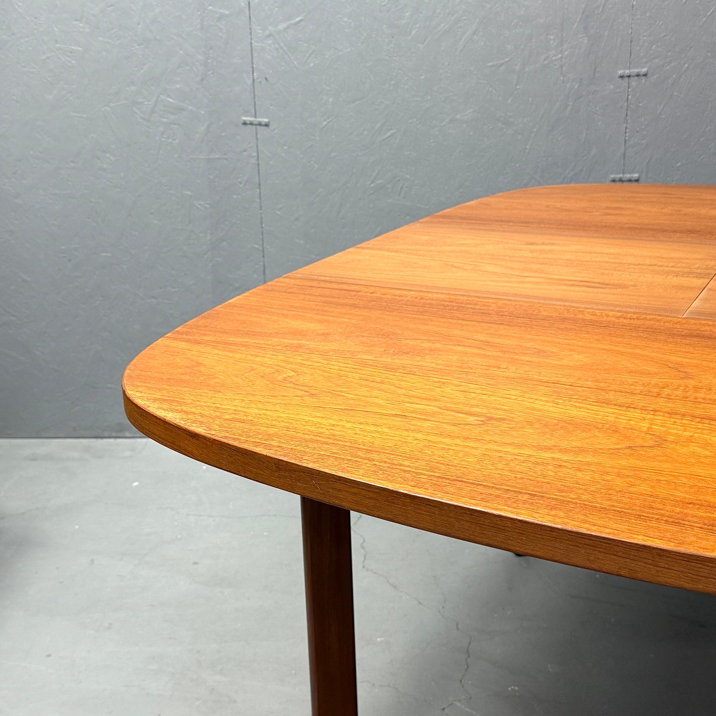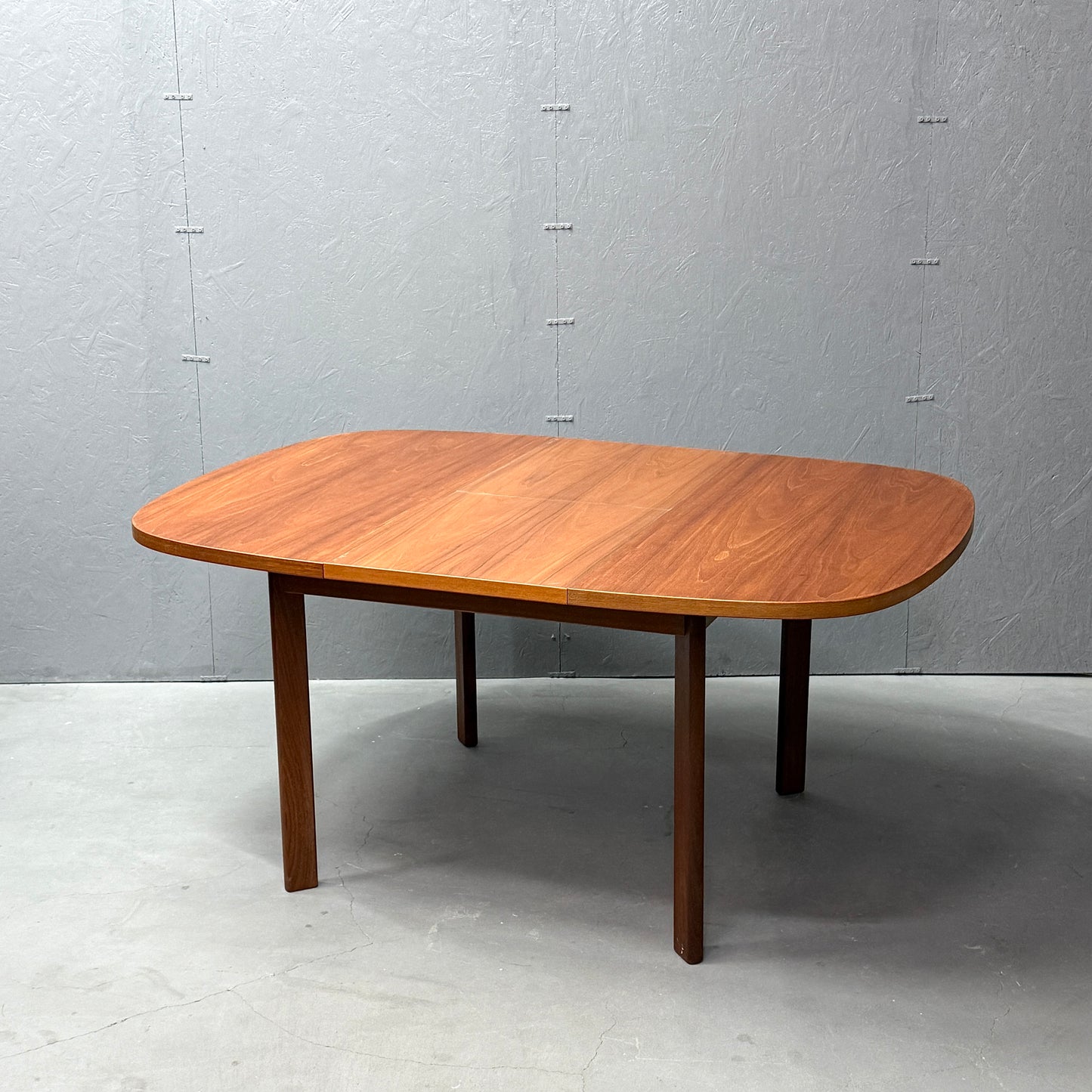 フレスコシリーズのラウンドテーブルで有名なG-PLAN。こちらの天板は四角形をベースに丸みを帯びた形状をしており、脚は角張っているのが特徴。エクステンションも可能で通常4人掛けから最大6人まで着席可能。材質はチークで温かみのある高級感を醸し出しています。