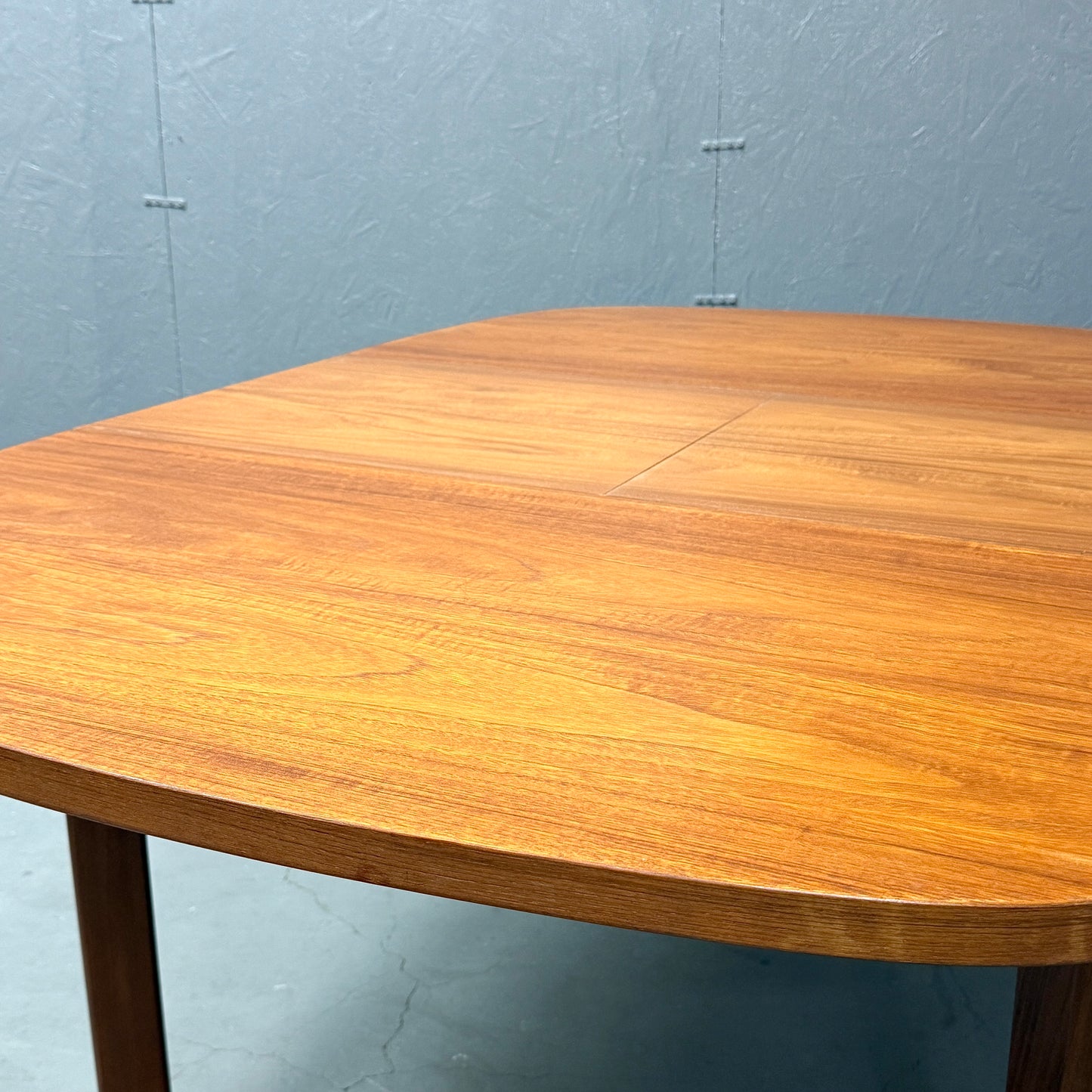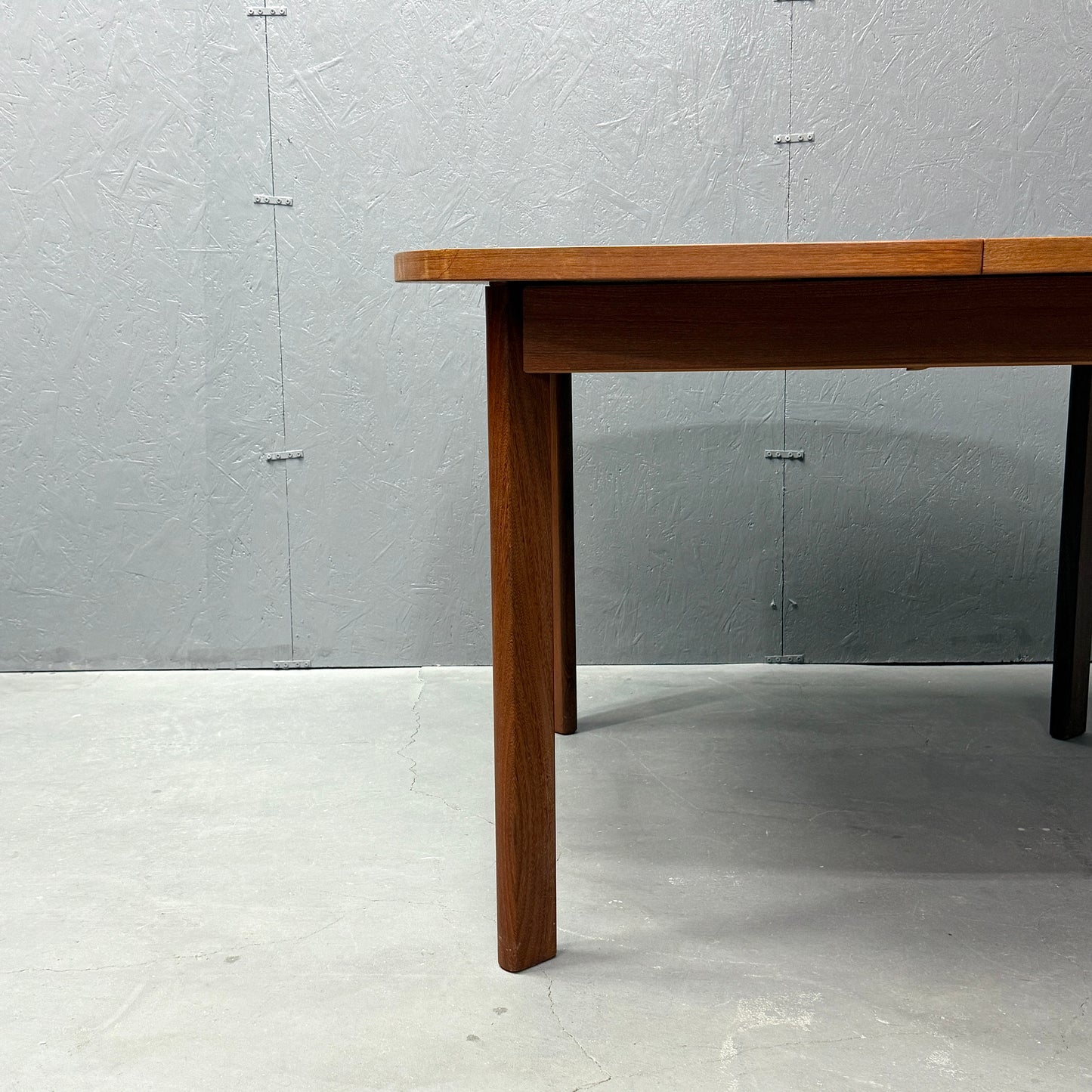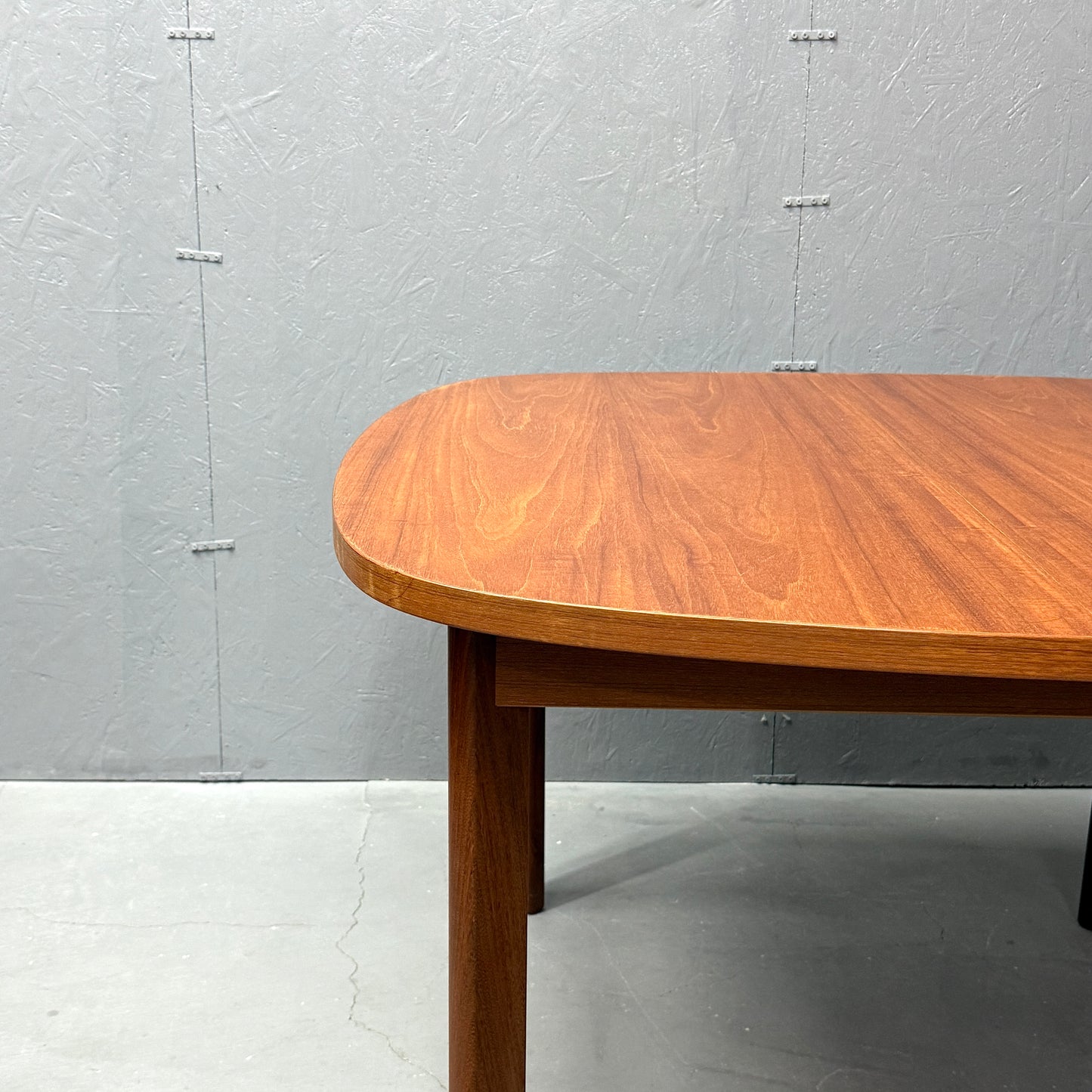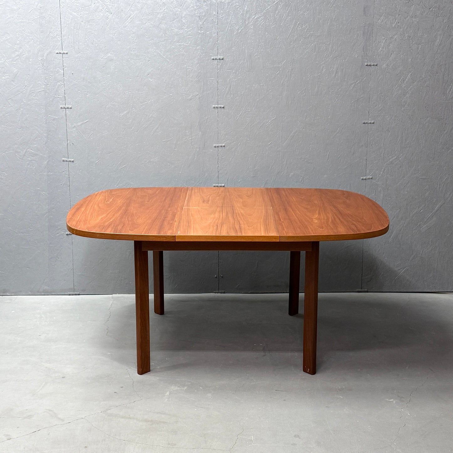 フレスコシリーズのラウンドテーブルで有名なG-PLAN。こちらの天板は四角形をベースに丸みを帯びた形状をしており、脚は角張っているのが特徴。エクステンションも可能で通常4人掛けから最大6人まで着席可能。材質はチークで温かみのある高級感を醸し出しています。