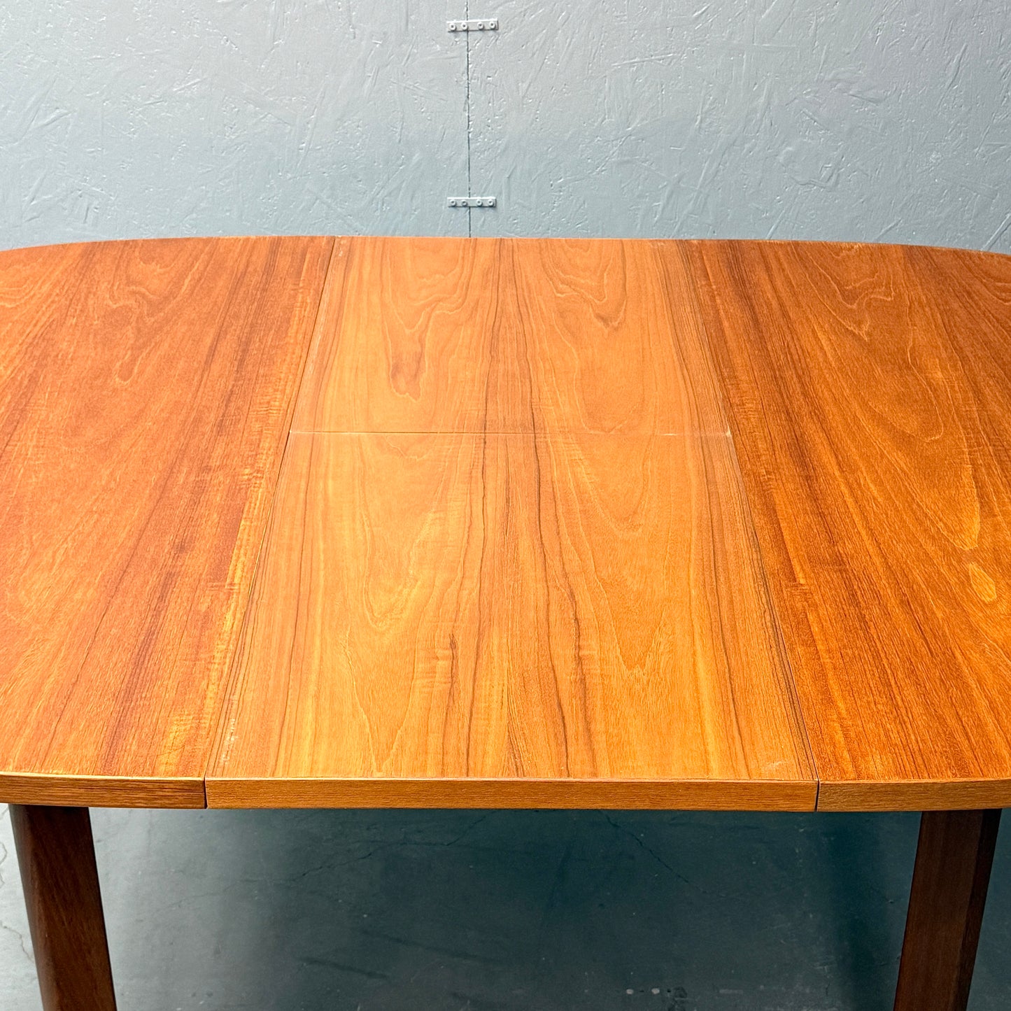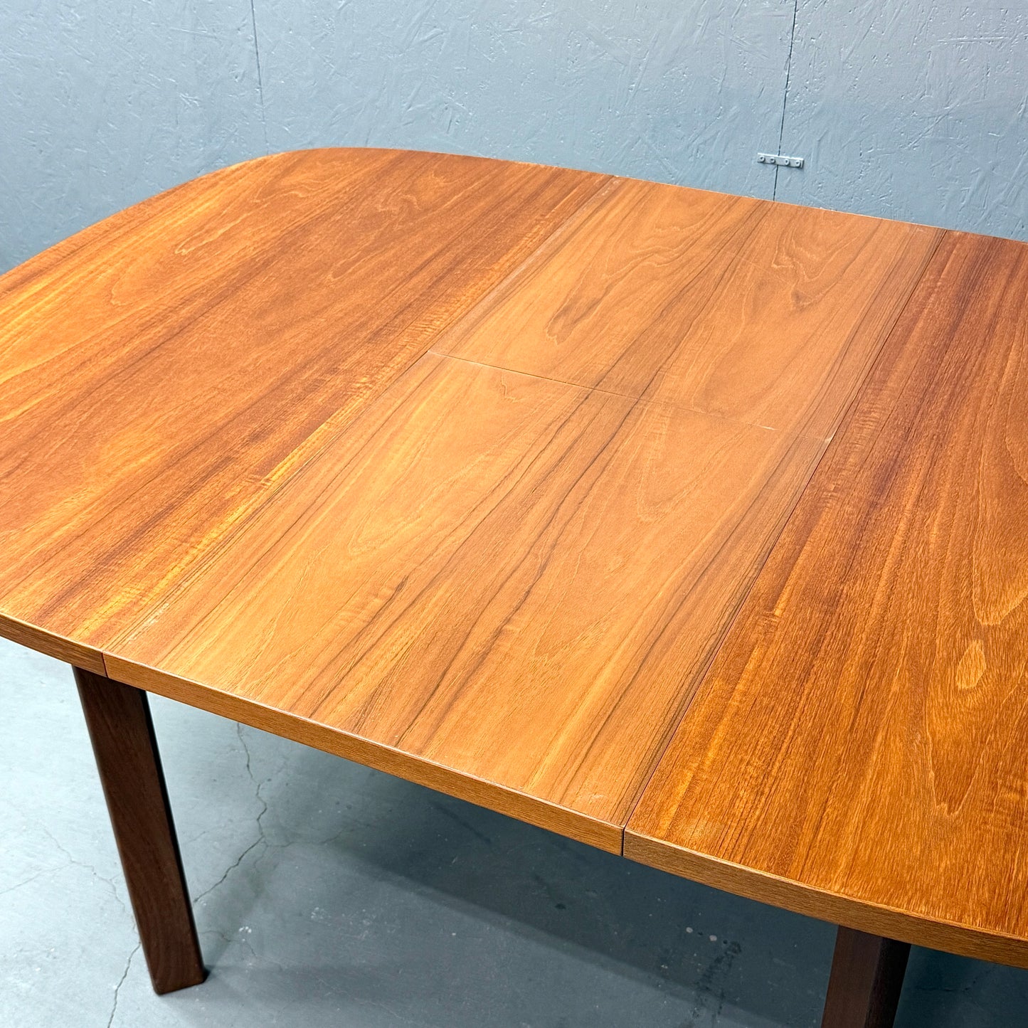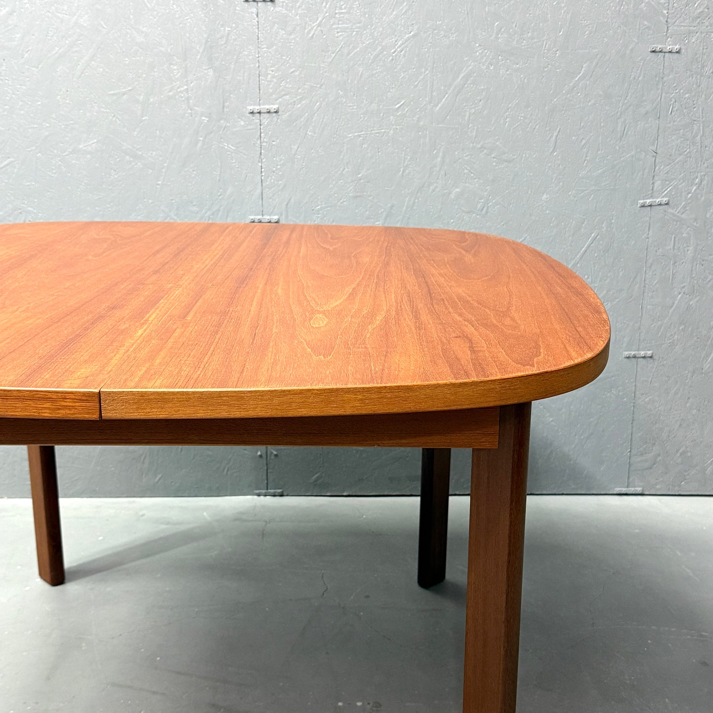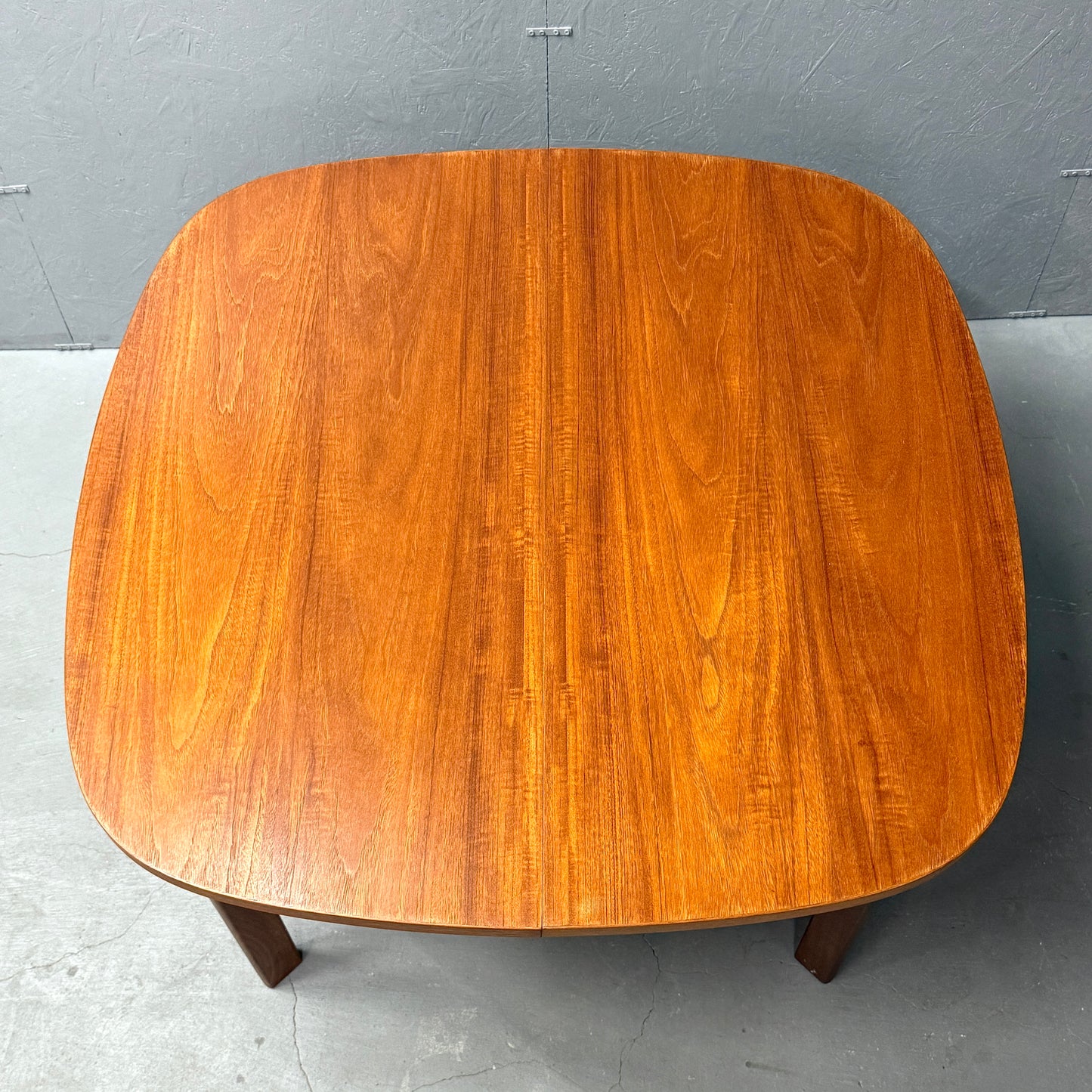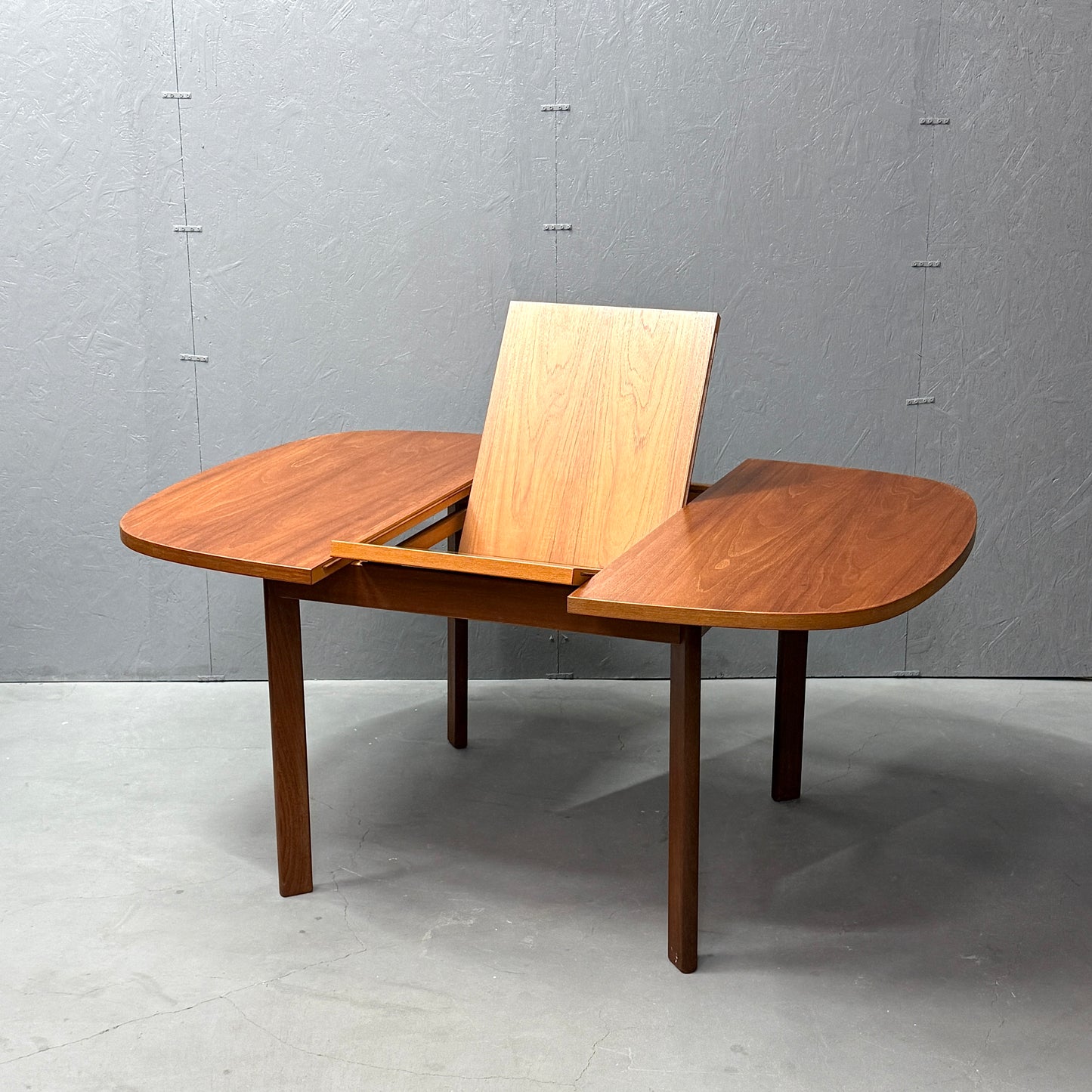 フレスコシリーズのラウンドテーブルで有名なG-PLAN。こちらの天板は四角形をベースに丸みを帯びた形状をしており、脚は角張っているのが特徴。エクステンションも可能で通常4人掛けから最大6人まで着席可能。材質はチークで温かみのある高級感を醸し出しています。