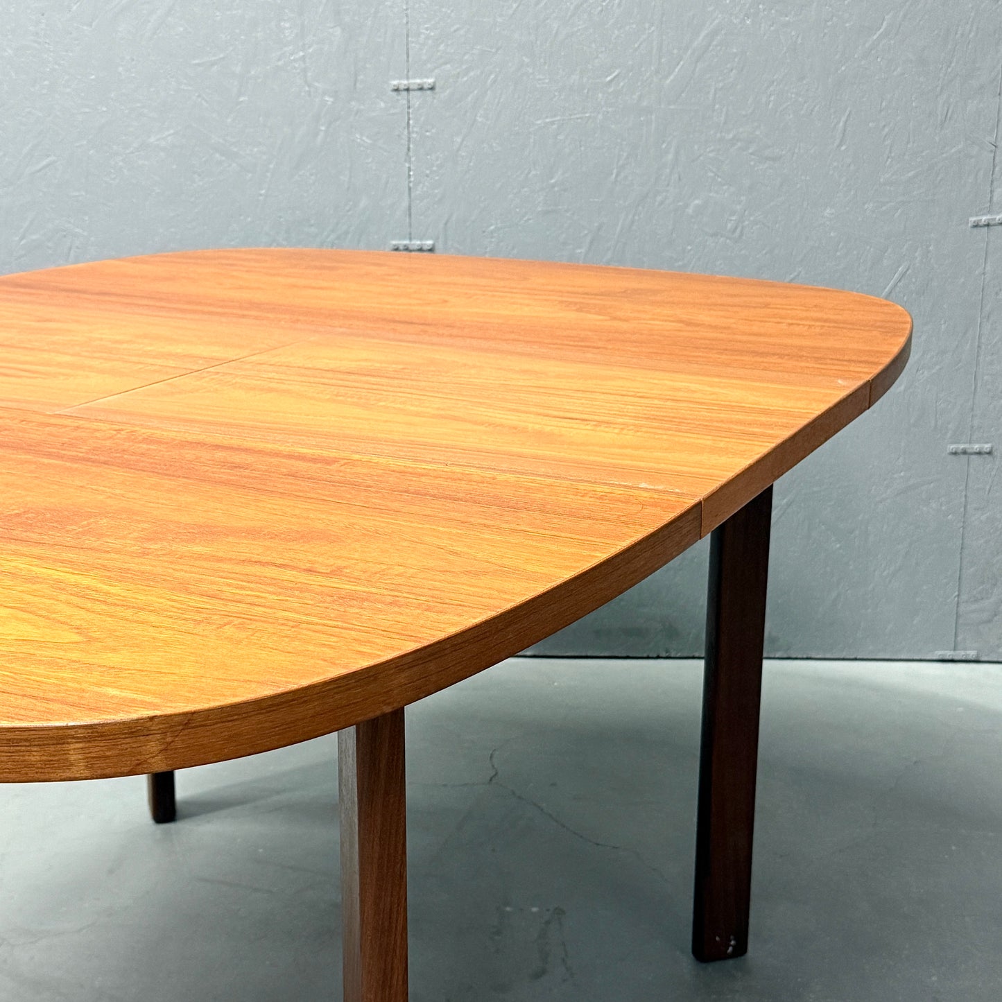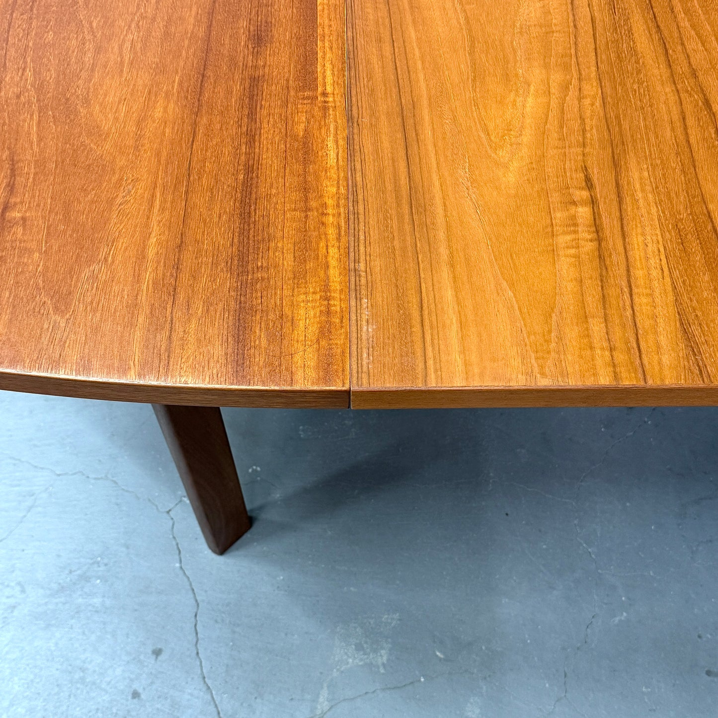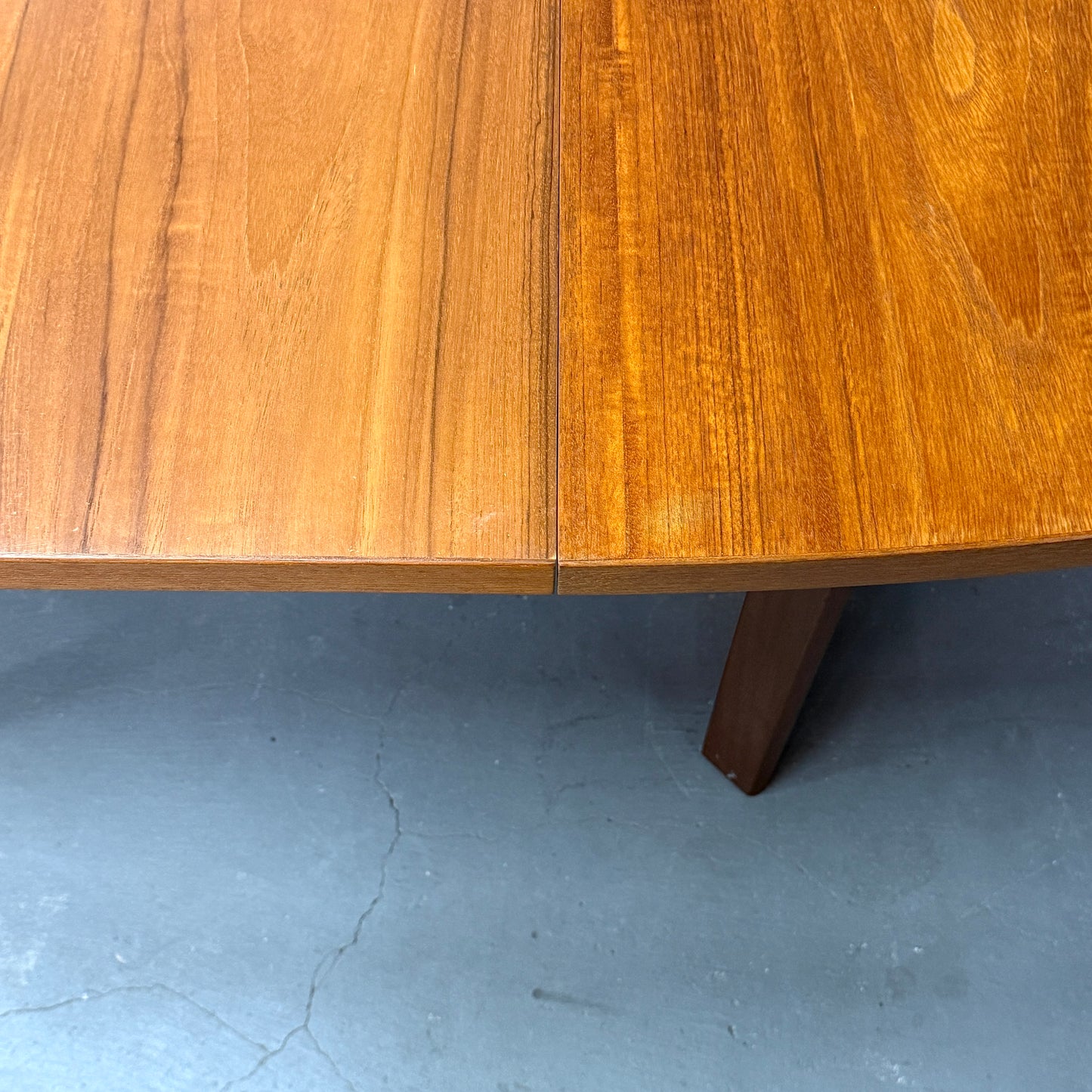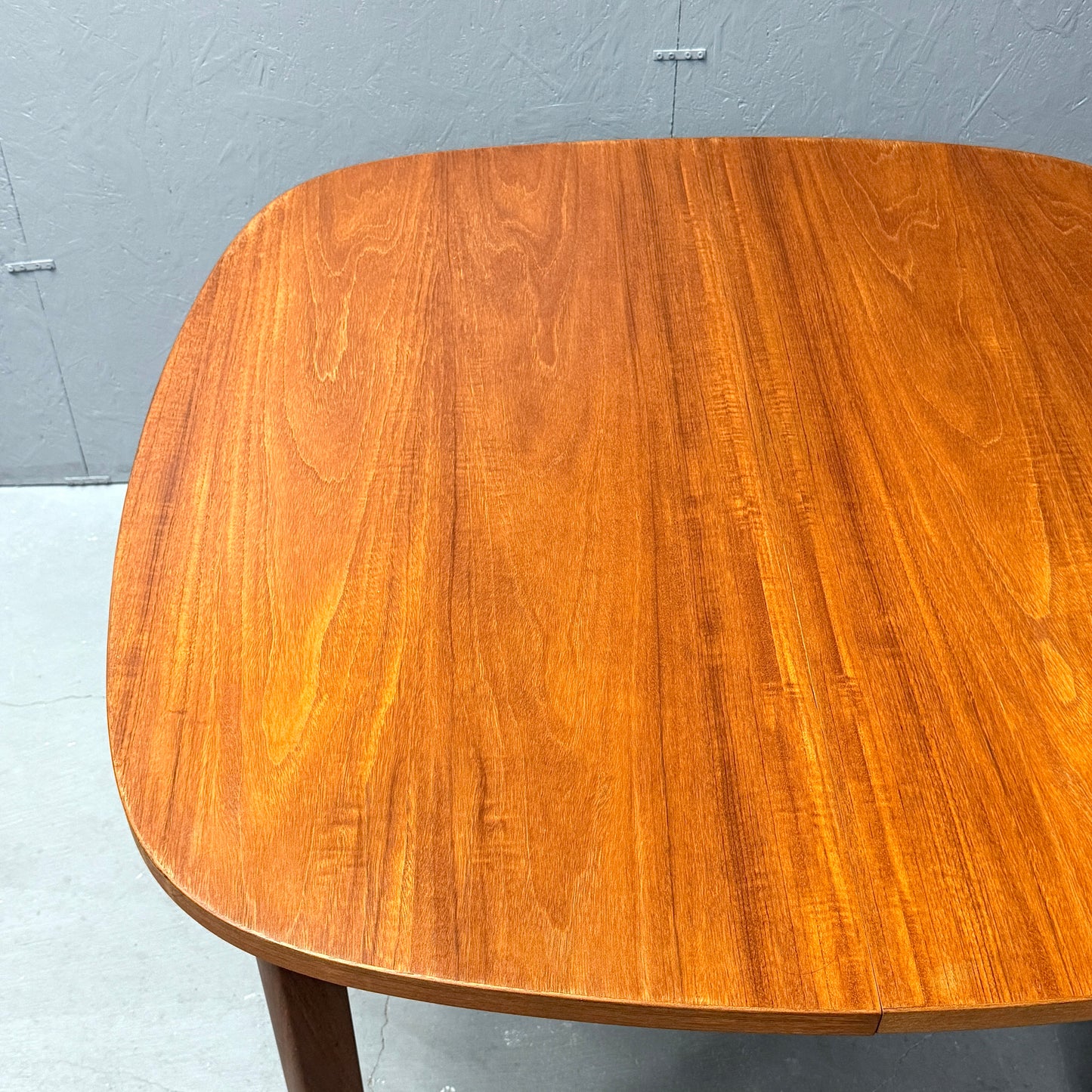 フレスコシリーズのラウンドテーブルで有名なG-PLAN。こちらの天板は四角形をベースに丸みを帯びた形状をしており、脚は角張っているのが特徴。エクステンションも可能で通常4人掛けから最大6人まで着席可能。材質はチークで温かみのある高級感を醸し出しています。