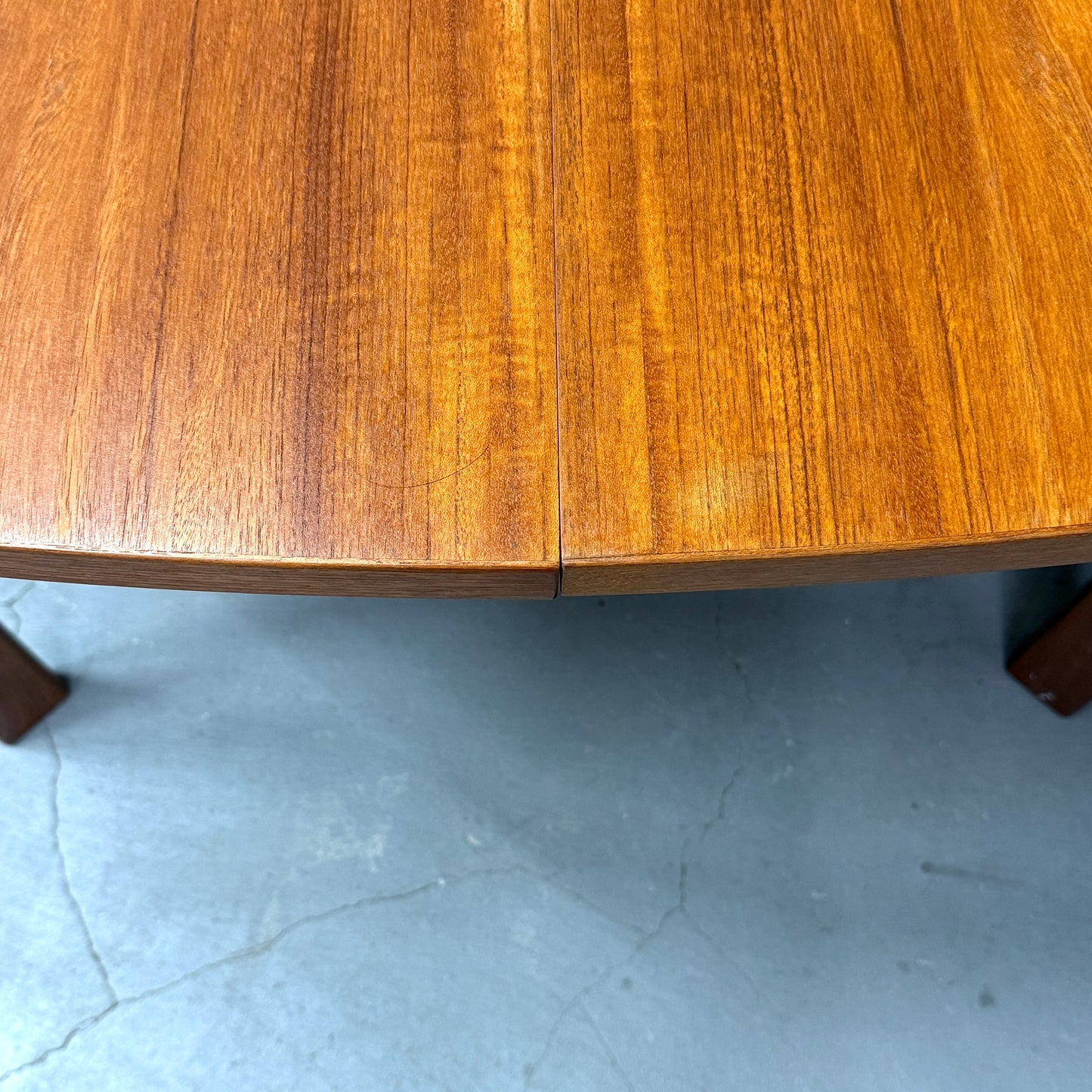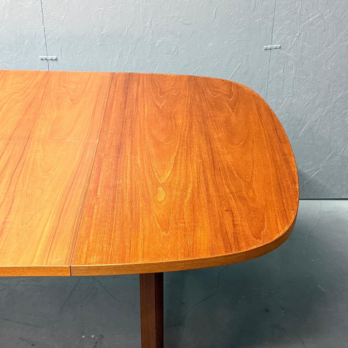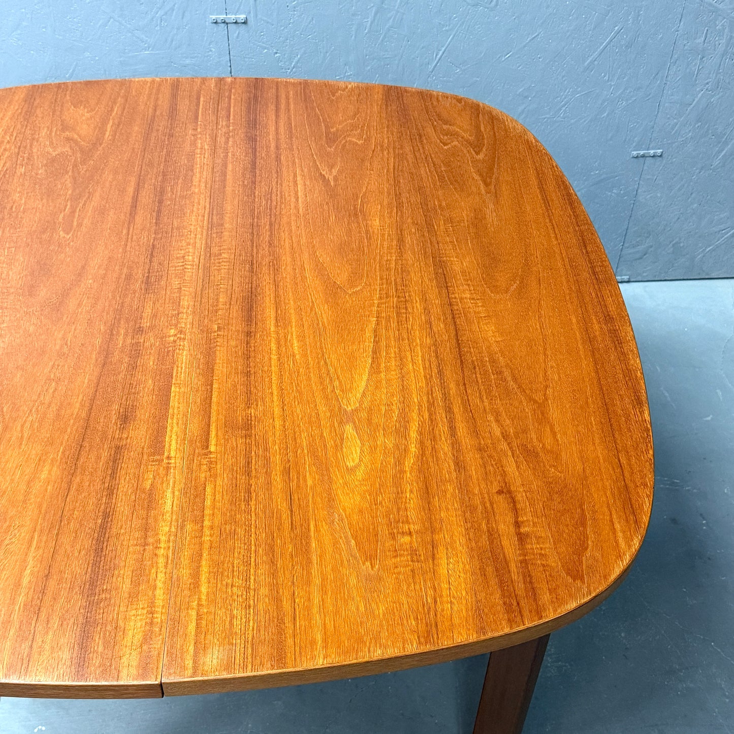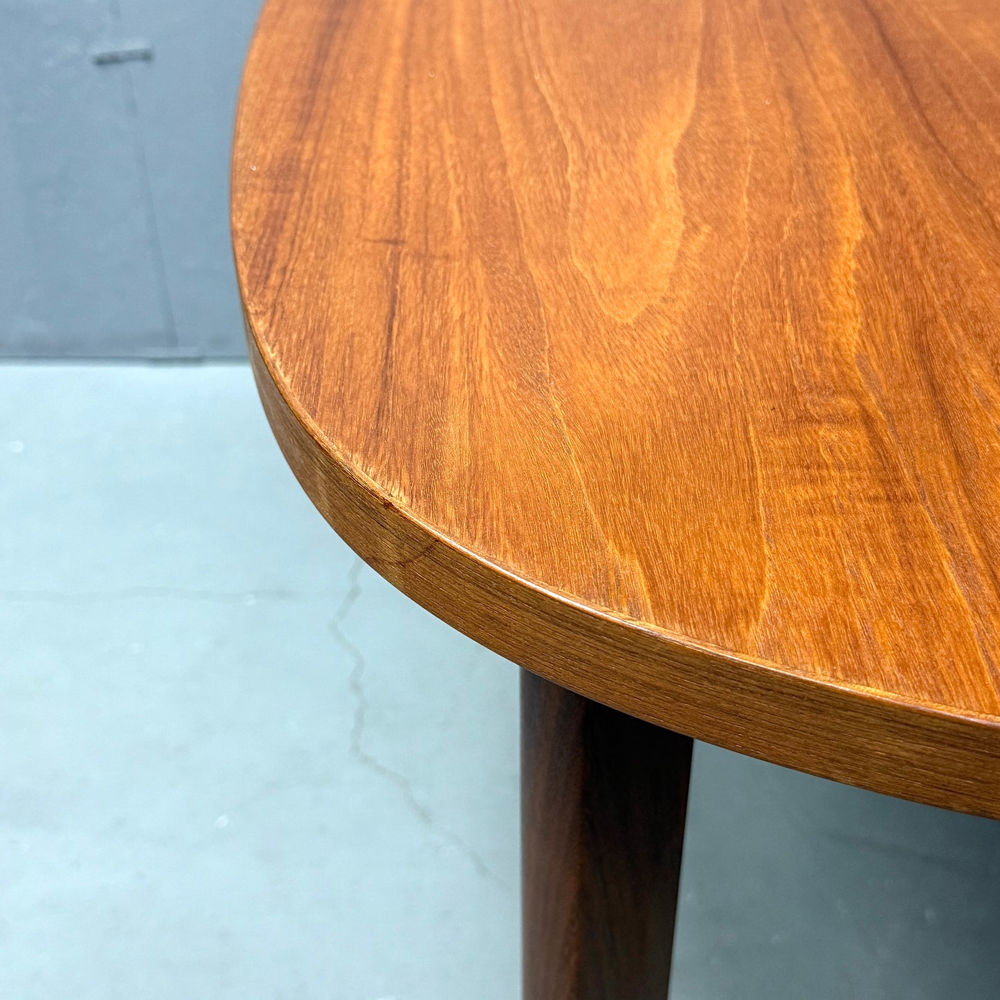 フレスコシリーズのラウンドテーブルで有名なG-PLAN。こちらの天板は四角形をベースに丸みを帯びた形状をしており、脚は角張っているのが特徴。エクステンションも可能で通常4人掛けから最大6人まで着席可能。材質はチークで温かみのある高級感を醸し出しています。