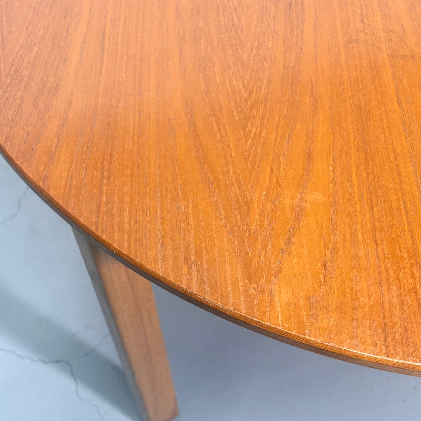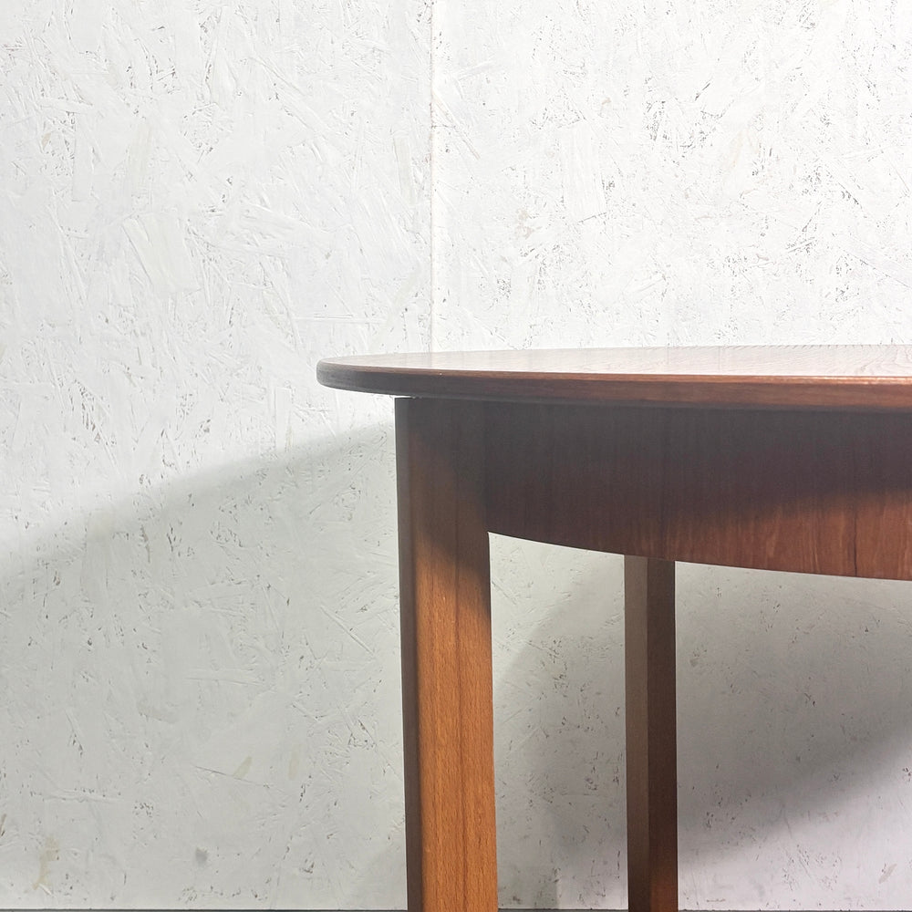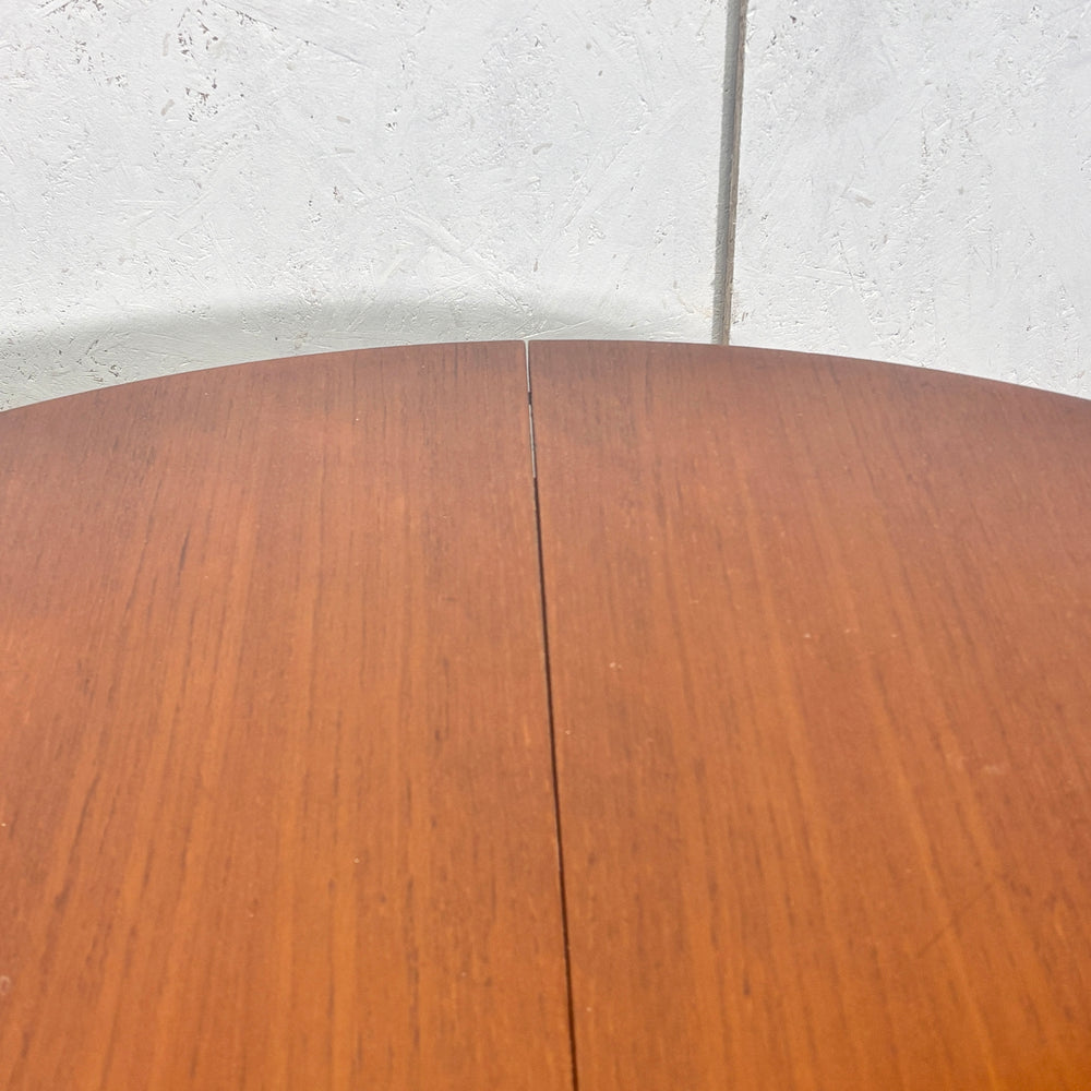 英国にて買い付けた1960〜1970年代のヴィンテージ。4人掛けが可能なベーシックで使い勝手の良いラウンドエクステンションテーブル。 チークの天板が北欧スタイルにマッチします。